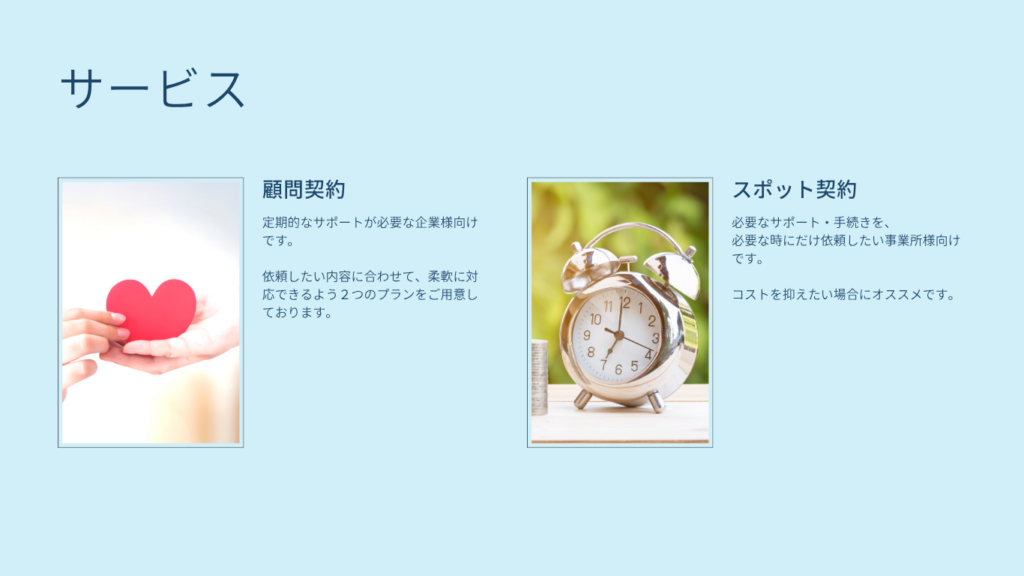 今度は社労士として、手続き業務のアウトソーシング、労務相談を行うことで、現場の負担を減らし、業務が滞らない体制づくりをサポートして参ります。